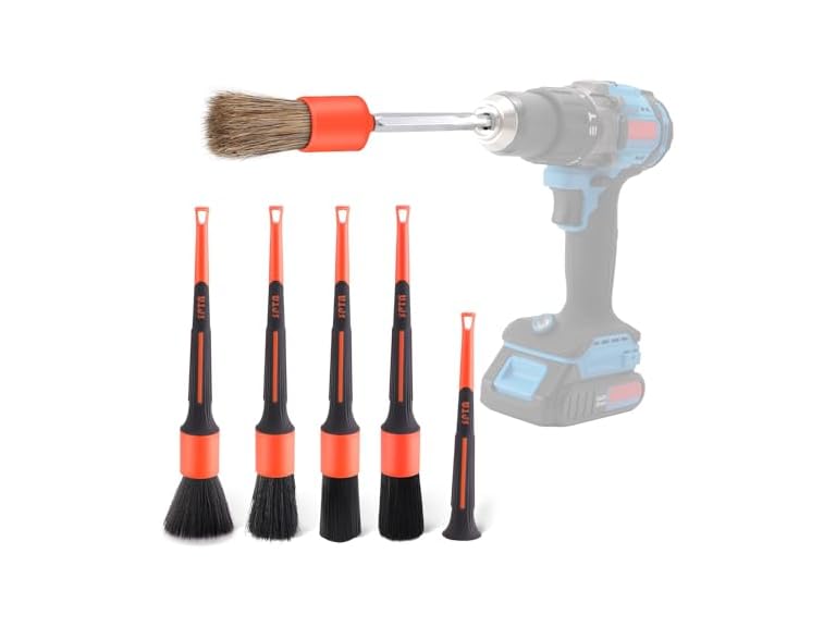 - SPTA Car Detailing Brush Set, 5 Pack V2.0 Soft Boar Hair Auto Detail Brush Kit with Drill Adapter, for Automotive Interior Exterior Dashboard Engine Bay Seat Leather, Can be Used in Electric Drills