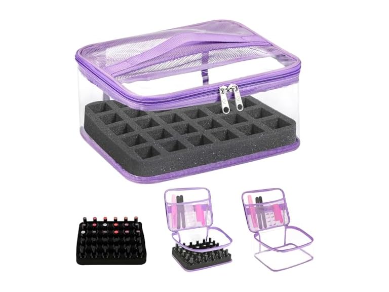 - [Versatile Nail Polish Organizer] This nail polish storage case holds up to 30 bottles of nail polish and doubles as a handy makeup tool kit when the removable foam insert is taken out. It effortlessly organizes makeup tools, ensuring neat storage to meet your diverse organizational needs.