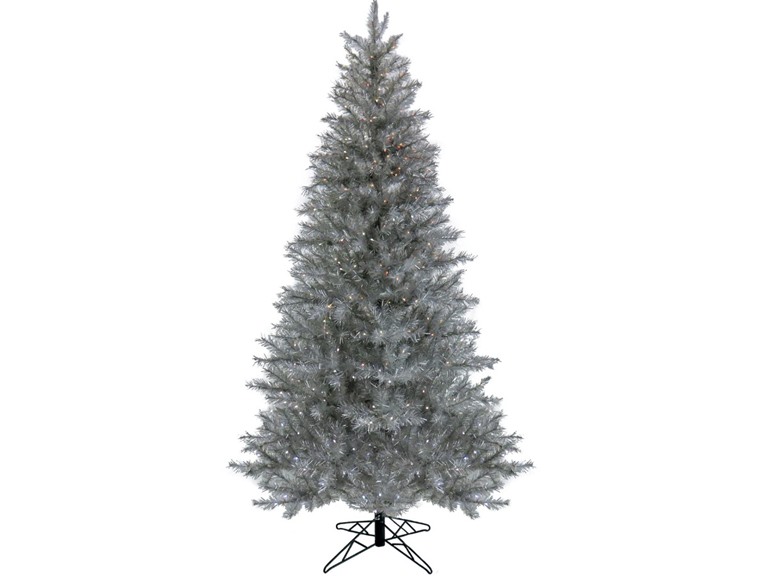 - (1) National Tree Company 7.5 ft. Pre-Lit Christmas Crystal Pine Silver Metallic Tree