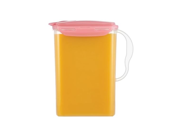 - (1) LocknLock Aqua Fridge Door Water Jug with Handle BPA Free Plastic Pitcher with Flip Top Lid Perfect for Making Teas and Juices, 3 Quarts, Pink