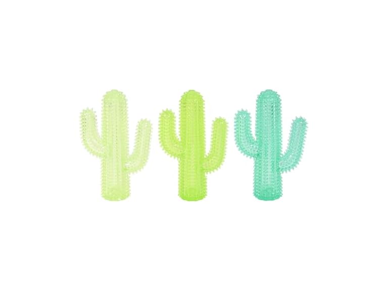 - Toy features gum-massaging spiky texture that dogs love.
