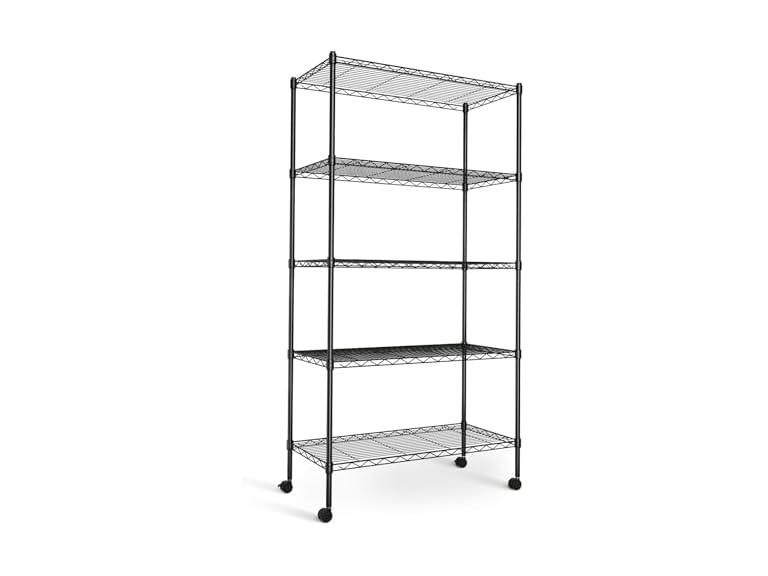 - (1) Simple Deluxe 5-Tier Storage Shelves, 29.92" W x 13.78" D x 65 "H Adjustable Heavy Duty Wire Shelving, 1250 Lbs Loading Capacity, Black