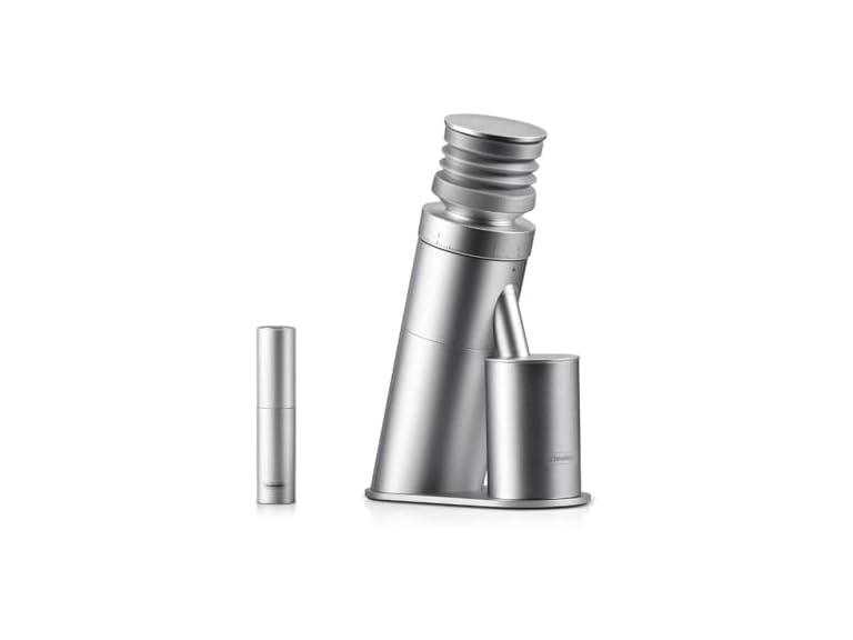 - ANTI-FLYING POWDER DESIGN: This coffee grinder espresso features a sealed-lid powder catching cup that completely prevents powder spillage. And we are equipped with an anti-static spray with coffee bean grinder, a few sprays on the coffee beans before grinding, can more minimize static electricity. Additionally, the burr coffee grinder's innovative blow-out funnel design significantly reduces chaff mess, keeping your brewing area clean.