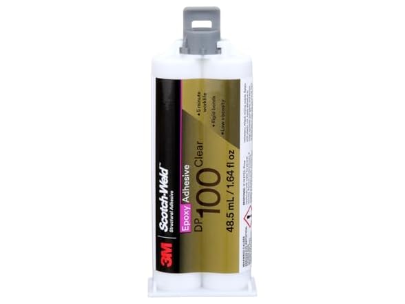 3M™ Scotch-Weld™ Epoxy Adhesive DP100 Clear is a two-part, rigid epoxy adhesive offering a fast cure and machinability. The low viscosity, clear formulation works on a variety of substrates including metal, glass, ceramic, stone and various plastics. This adhesive cures rigid for high static load holding and high shear strength to ensure lasting bonds, making it ideal for multiple applications in the transportation, general industrial, signage, appliance and construction industries. The mix ratio is 1:1 for quick, precise dispensing and a fast 5 minute work-life. The adhesive reaches handling strength in approximately 20 minutes and is fully cured in 48 hours at 72 °F (22 °C). When using this, or other Duo-Pak (DP) size adhesives, rely on 3M Applicators for convenient and accurate metering, mixing and dispensing. When using a Duo-Pak (DP) size adhesive, rely on 3M dispensing equipment for convenient and accurate metering, mixing and dispensing. Available in Duo-Pak and bulk containers High Shear Strength Ensures Permanent Bonds 3M Scotch-Weld Epoxy Adhesive DP100 is a high-flow, versatile structural adhesive for general purpose bonding. Its low viscosity, clear formulation works on a variety of substrates including metals, ceramics, concrete and wood. With a high shear strength it delivers strong, rigid performance, making it ideal for multiple applications in the electrical, general industrial, construction and consumer goods industries. Recommended Applications General attachment applications in a variety of industries Attachment of various substrates that require permanency Applications that require machining afterwards Applications requiring transparent bond lines Fast 5 Minute Work Life with Handling Strength in 20 Minutes The mix ratio for 3M Scotch-Weld Epoxy Adhesive DP100 is 1:1 for quick, precise dispensing, and with a 5-minute working time there's some opportunity for repositioning for precise alignment of parts. The adhesive reaches handling strength in approximately 20 minutes and is fully cured in 48 hours (at 72°F/22°C). UL 94 HB certified. Understanding Epoxy Adhesives Epoxy adhesives, including 5 minute epoxy are part of the class of adhesives called "structural adhesives," which include polyurethane, acrylic, cyanoacrylate and others. Epoxies are formulated as liquid reactive polymers that undergo a chemical reaction when mixed and then cure to form a solid plastic material. Once the two parts are mixed in their specified ratio, they begin the curing process and offer a limited working time where the adhesive can be applied and the two surfaces positioned as needed. This work life lasts anywhere from a few minutes to several hours. These structural adhesives provide high shear and peel strengths, depending on the formula, and better heat and chemical resistance than other common adhesives. In general, epoxy adhesives have the highest overall strength and offer the best performance and most resistance to high temperatures, solvents and outdoor weathering. Epoxy adhesive (often referred to as epoxy glue) is widely used in building and home construction; aircraft and automobile manufacturing; bicycle, boat, golf clubs, ski and snowboard assembly as well as a host of home use and other applications. It is used virtually anywhere high-strength bonds are needed along with resistance to environmental conditions. These adhesives are popular for their ease of use, mechanical strength and chemical resistance. Formulations can be created to make epoxy for plastic flexible or epoxy for metal rigid, epoxy resin transparent or opaque, quick setting or slow setting. The versatility with which these adhesives can be formulated helps meet almost any requirement for bonding wood, metal, glass, stone and various plastics.