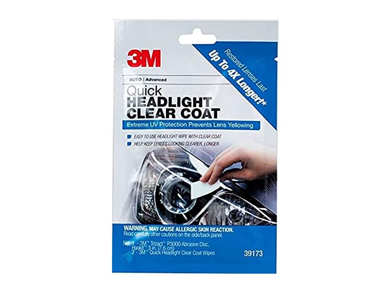 - 3M Quick Headlight Clear Coat, Cleans and Prevents Lens Yellowing, 39173, 1 Kit