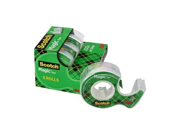 - INVISIBLE TAPE: 3 rolls of Scotch Magic Tape with dispenser mends rips and tears securely, permanently and invisibly