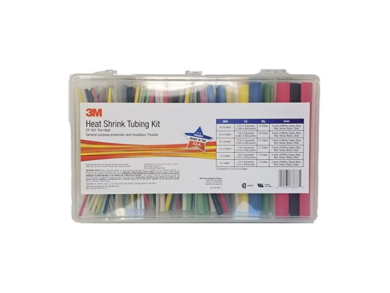 - (1) 3M FP301-3/32-TO-1/2-ASSRTED-5 Single Wall (Thin) Heat Shrink Tubing FP-301 Assorted Size Kit 48 Inch Flexible Polyolefin