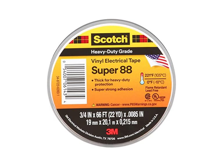 - 3M Super 88 Vinyl Electrical Tape, .75 in x 66 ft, Black, 1-Roll