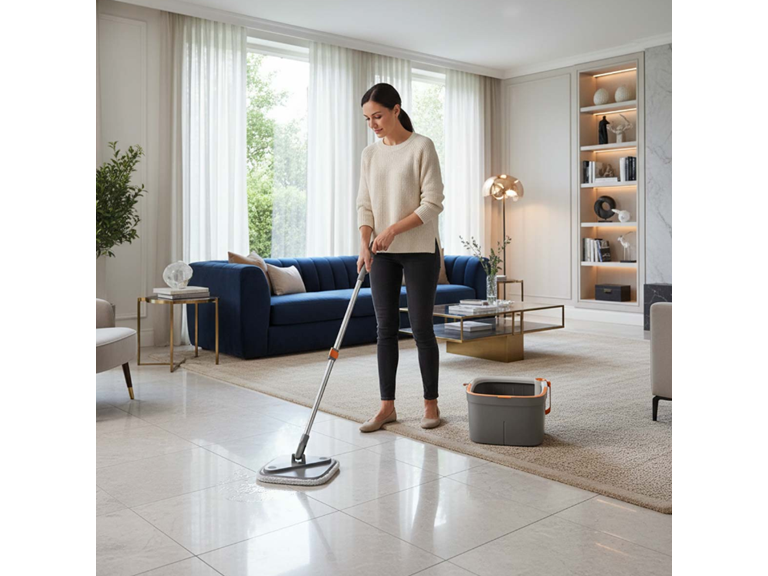 The mop includes high-absorbency microfiber replacement heads that easily trap dust, hair, and stains. It’s ideal for both wet mopping and dry dusting, making it safe and effective for surfaces like hardwood, laminate, tile, glass, and more.