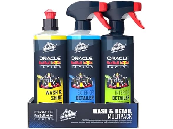 - Armor All Podium Series 3-Piece Car Wash & Detail Kit Developed with Oracle Red Bull Racing, Includes Hybrid Ceramic Wash & Shine, Exterior Detailer Spray, and Interior Detailer Spray, 16 fl oz Each