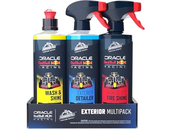 - Armor All Podium Series 3-Piece Exterior Car Detailing Kit Developed with Oracle Red Bull Racing, Includes Hybrid Ceramic Wash & Shine, Exterior Detailer Spray, and Tire Shine Spray, 16 fl oz Each