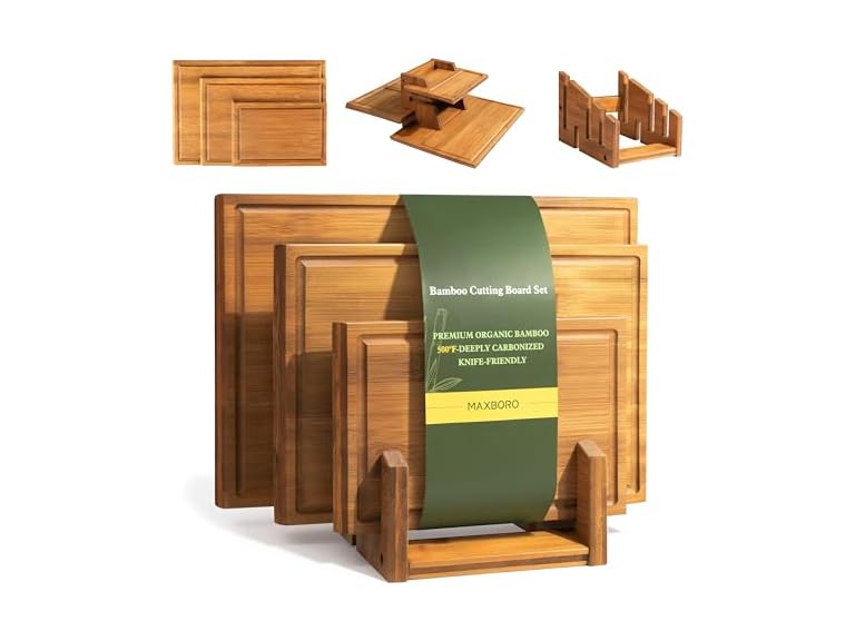 - Durable Bamboo Construction: Crafted with a 3-layer structure and upgraded Bamboo Cutting Boards craftsmanship, our boards resist cracking and warping while staying sturdy for daily use. A premium choice among bamboo cutting boards for kitchen.
