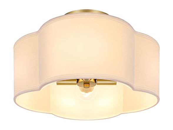 - Premium Quality: Constructed with the top-quality metal, this close to ceiling light is sturdy and durable for years. The antique brass aka gold finish also keeps the light fixture from rusting and remains shiny and new. The exquisite fabric softens the light to protect your eyes while making your space cozy and inviting
