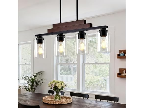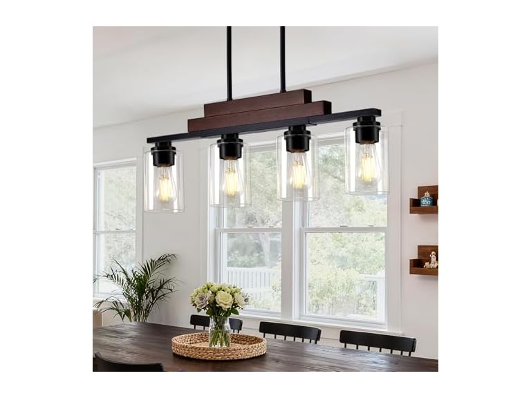 - Bulb Compatibility & Lighting Guidelines: Compatible with all E26 base bulbs(max 100W incandescent or 25W LED per bulb), allowing flexible choice of brightness and color temperature—from vibrant lighting for gatherings to soft warmth for intimate dinners. Moreover, this farmhouse dining room light fixture allows smooth dimming when used with dimmable bulbs and a matching dimmer(bulbs and dimmer not included), allowing you to effortlessly set the ideal mood and ambiance for any occasion