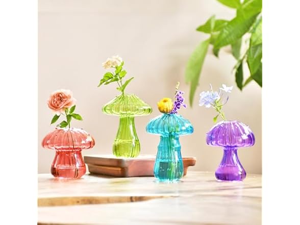 - Retro Home Office Décor: Brings bursts of colorful art into your home.Set of 4 Mushroom-shaped hydroponic vases in diverse sizes and vibrant colors are ideal for home decor, office settings, or as unique gifts for plant enthusiasts. Their compact dimensions seamlessly blend with modern interior aesthetics
