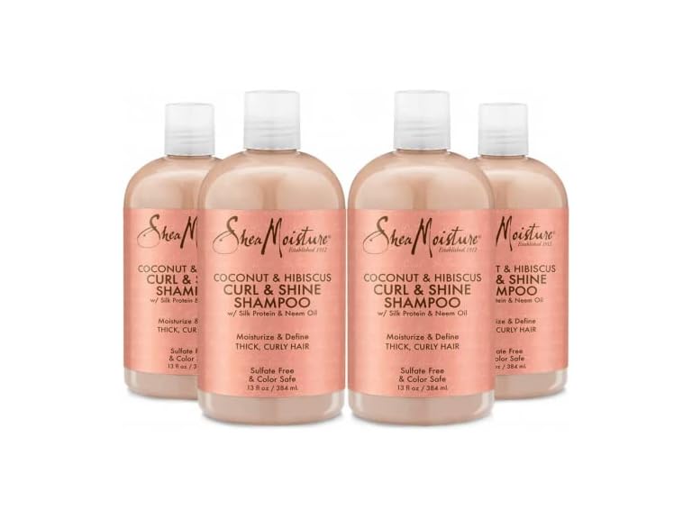 SheaMoisture Coconut & Hibiscus Curl & Shine Shampoo for Curly Hair - With Coconut Oil, Vitamin E, Neem Oil, Sulfate Free Formula to Nourish Curls, 13 Fl Oz (Pack of 4)