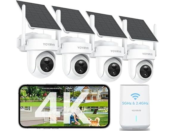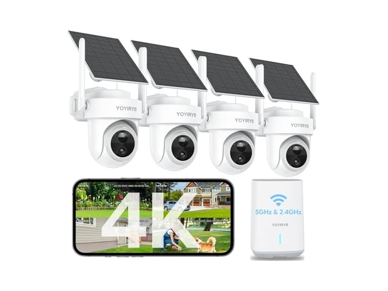 - 【No Monthly Fees, 64GB Encrypted Base Station& Dual-Band Wi-Fi】 Enjoy total security and privacy with YOYIRYB security cameras wireless outdoor—no cloud uploads, no monthly fees. All videos are stored locally on the 64GB encrypted Base Station, protecting your data from hackers and outages. Equipped with dual-band Wi-Fi (5GHz & 2.4GHz), the Base Station also acts as an independent Wi-Fi relay hub, extending coverage up to 985 ft²/300 m² and reducing congestion on your home network. With one-tap multi-camera pairing, setup takes seconds. A reliable outdoor camera wireless system built for premium home protection.