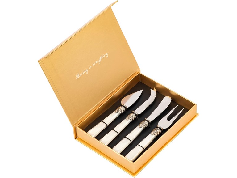 - (1) 4-Piece Cheese Knive Set With Gift Box Stainless Steel Knife With Pearl Handle,Suitable For Parties And Festivalsfor Charcuterie Boards Accessories (White)