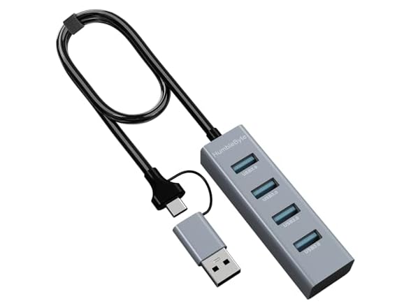 - (1) 4-Port USB 3.0 Hub,Aluminum USB Port Extender, 2 Ft Long Cable USB Splitter, 5Gpbs Data Transfer, Gray, for Laptop, PC, MacBook, MAC, Mobile HDD, Mouse, Keyboard, Flash Drive,and More...