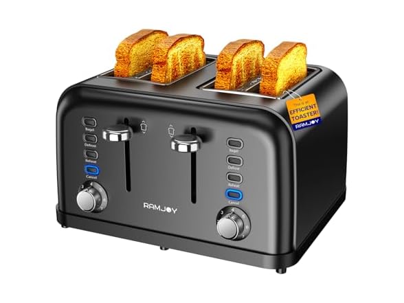 - DUAL INDEPENDENT CONTROLS - Less time, more choices! With double controls on this 4 slot toaster, you’re allowed to fulfill different tastes at the same time. Enjoy quicker toasting for the whole family while taking care of individual taste preferences too.