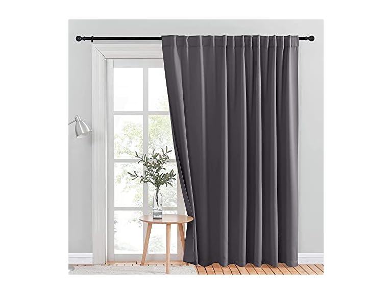 - (1) NICETOWN Sliding Door Curtain for Patio, 100x84 Blackout Room Divider Curtain with Rod Pocket & Back Tab Design, Thermal Insulated Drapes for Sliding Glass Door, Bedroom, Living Room, Grey, 1 Panel