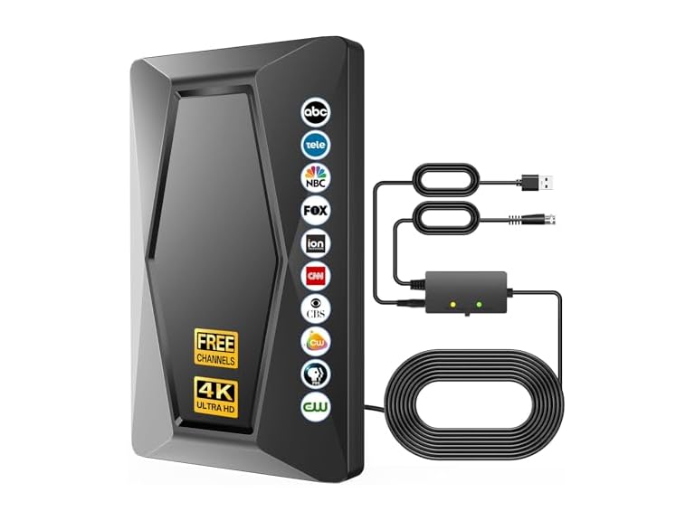 - Free Full Local Channels: Say goodbye to huge monthly bills! Our upgraded digital antenna for smart tv indoor lets you get rid of expensive TV bills and enjoy hundreds of free HD TV programs like ABC, CBS, NBC, PBS, FOX, UNIVISION, and more.