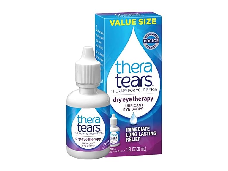 - TheraTears Dry Eye Therapy Lubricant Eye Drops provide immediate, long-lasting relief of dry eye symptoms