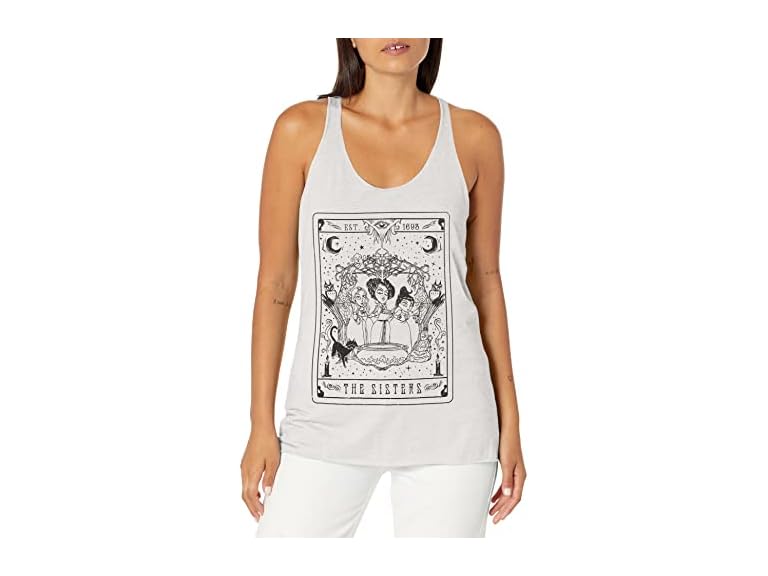 - Strut your stuff with this stylish new Halloween women's racerback tank top featuring a cool tarot card with a drawing of the Sanderson sisters and Thackery Binx around a cauldron!