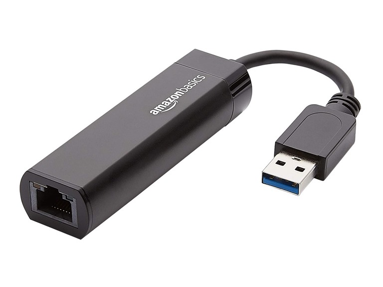 (1) Amazon Basics USB 3.0 to 10/100/1000 Gigabit Ethernet Internet Adapter, Black