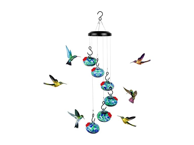 - 【Innovative Wind Chimes Feeder】 A creative blend of windchimes and humming birds feeders for outside, providing multiple feeding spots. A versatile addition to any indoor or outdoor space.
