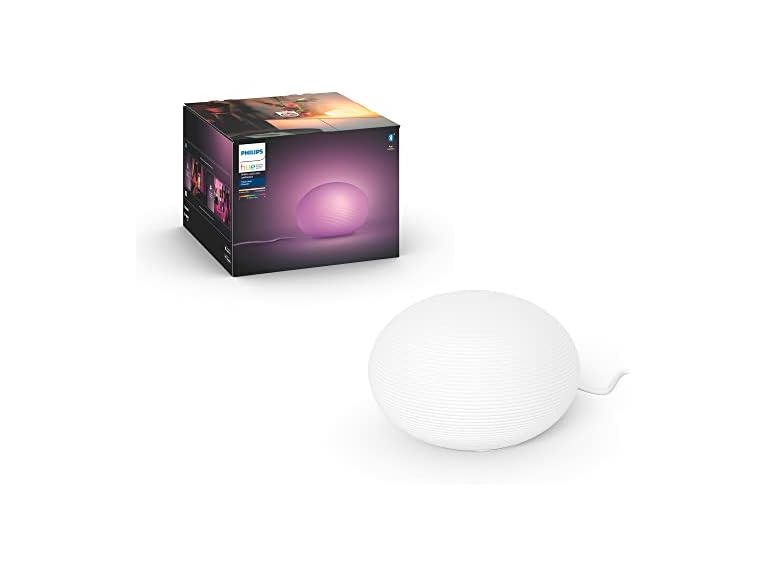 - WHAT’S IN THE BOX - Includes one white Hue Flourish table lamp with an E26, White and Color Ambiance smart, LED, color-changing bulb; Perfect for diffused light in the living room, bedroom, home office, or study
