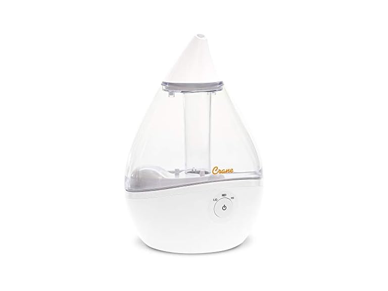 - (1) Crane Ultrasonic Teardrop Humidifier for Baby, Cool Mist, Auto Shut off, Adjustable Humidity, for Nursery, Bedroom, Clear and White, 0.5 Gallon