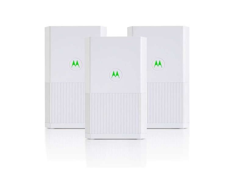The MOTOROLA MH7023 Whole Home WiFi System with AC2200 Tri-Band Mesh WiFi includes 1 Whole Home WiFi Router and 2 Whole Home WiFi Satellites to bring fast and reliable Internet to 9,000 sq ft of your home (and yard!). If you need even more coverage you can easily add another Motorola Whole Home Satellite (MH7021 sold separately) adding an additional 3,000 sq ft of coverage, at any time.