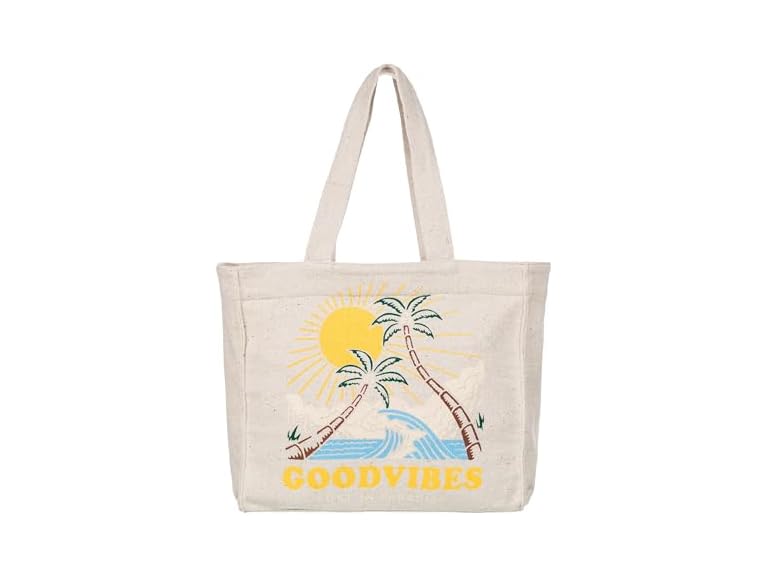 - (1) Roxy 12L Cotton Blend Printed Tote Bag, Drink The Wave-Nautral