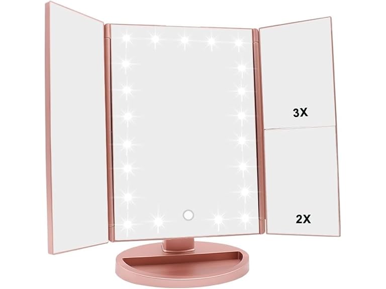 - 180 degree rotation & Tri-fold: The light-emitting makeup mirror on the worktable can be easily adjusted, and the viewing angle can be fixed perfectly and comfortably. Tri-Fold Design :Easy for take away and daily maintenance, can open or fold it like a book when not using to protect it away from the dust or other scratches.The tri-fold and detachable design allows you to take it with you and enjoy delicate makeup anytime, anywhere