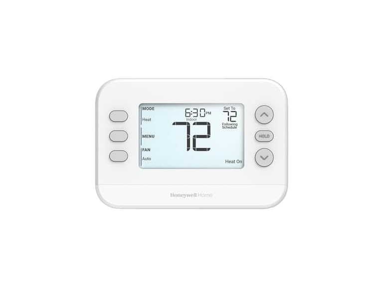 - Clear and Intuitive LCD Display: The 4.09 sq. in. backlit screen shows current temperature, set temperature, system mode, and fan status.