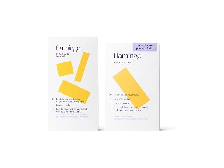 - Flamingo Face & Pubic Wax Kit - 44 Wax Strips, 16 Post-Wax Cloths, and Calming Serum - Easy At-Home Hair Removal