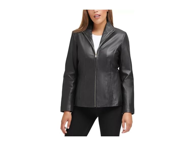- (1) Cole Haan Women's Leather Wing Collared Jacket (Standard and Plus Size), True Black