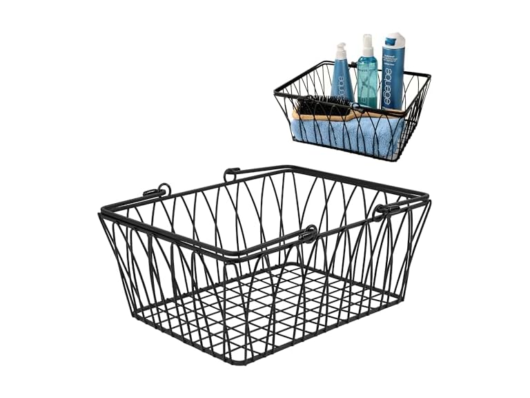 - (1) Spectrum Twist Wire Basket for Organizing (Medium, Black) - Sturdy Farmhouse Pantry Basket Storage with Handles - Wire Storage Basket Organizer for Kitchen, Shelf, Closet, Bathroom & More