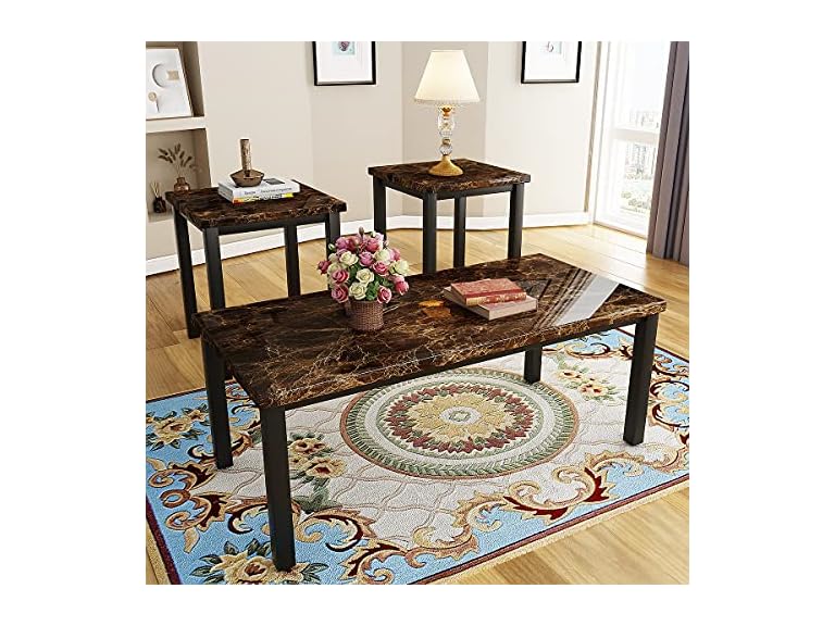 - (1) DKLGG Faux Marble Coffee Table Set of 3 Piece, Living Room Table Set Coffee Table & 2pcs End Table with Metal Frame Sofa Side Tables Perfect for Living Room Apartment Accent Furniture