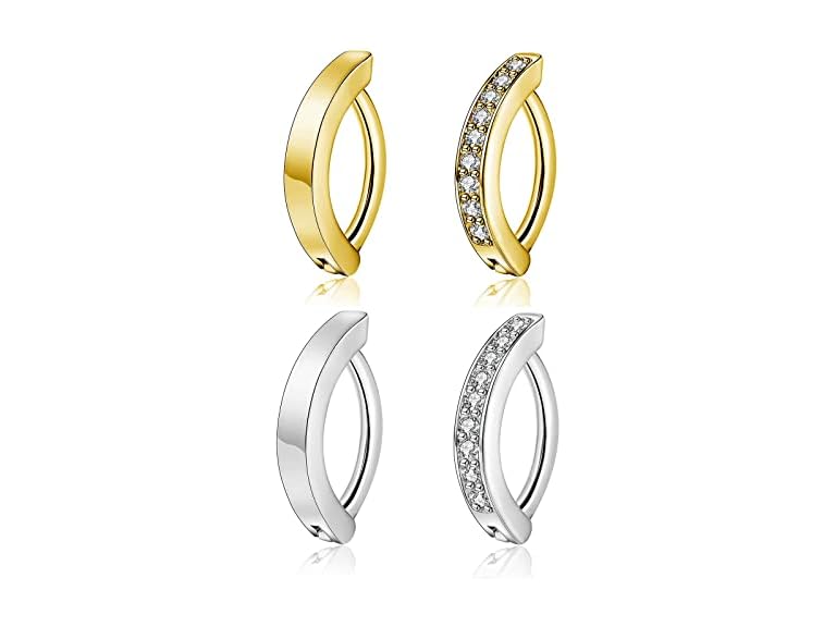 - (1) Faiwuoi 4Pcs 14G Clicker Belly Button Ring for Women Surgical Steel Belly Barbell Piercing Simulated Diamonds Rivet Reverse Curved Navel Barbell Body Jewelry