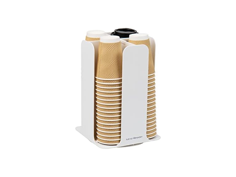 - (1) Mind Reader Cup and Lid Carousel, Countertop Org, Coffee Bar, Beverage Cup Holder, Plastic, 7.75"L x 7.75"W x 11.5"H, White