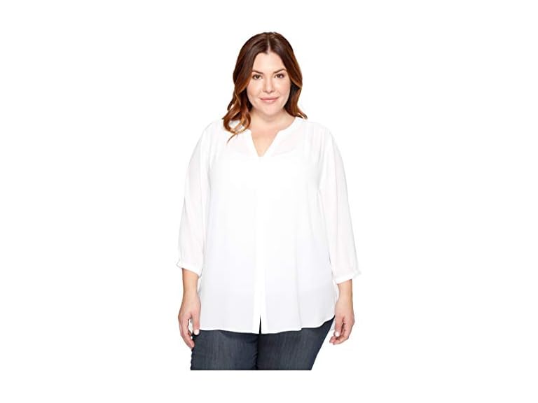 - (1) NYDJ Women's Plus Size Three-Quarter Sleeve Pintuck Blouse | Classic Lightweight Top, Optic White, 4X