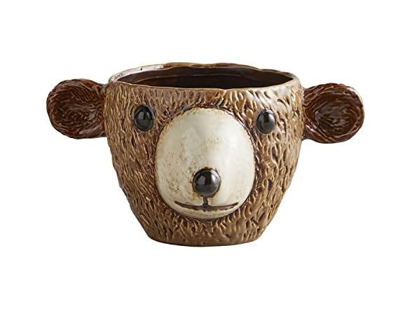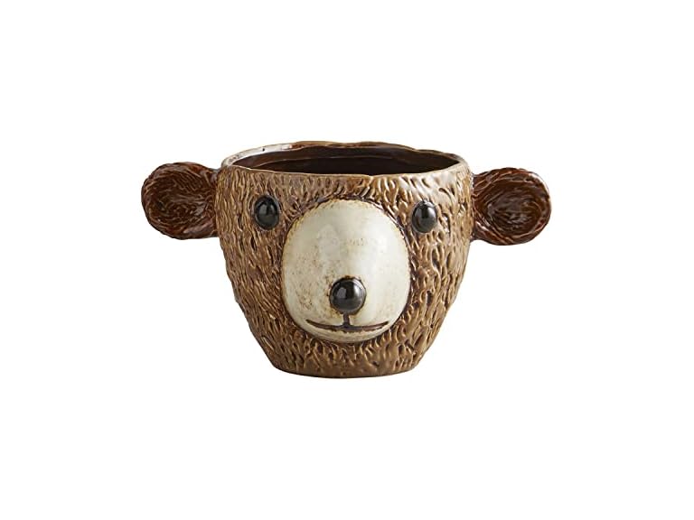 - 47th & Main Unique Textured Shaped Ceramic Planter Flower Pot for Succulents Small Plants and More, Large, Bear Face