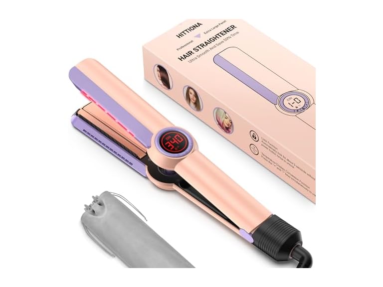 (1) Ionic Flat Iron Hair Straightener - 1.3 Inch Ceramic Plate with Infrared for Anti-Frizz, Detachable Comb for Smooth, LCD Temperature Control, Dual Voltage Travel Flat Iron for All Hair Types