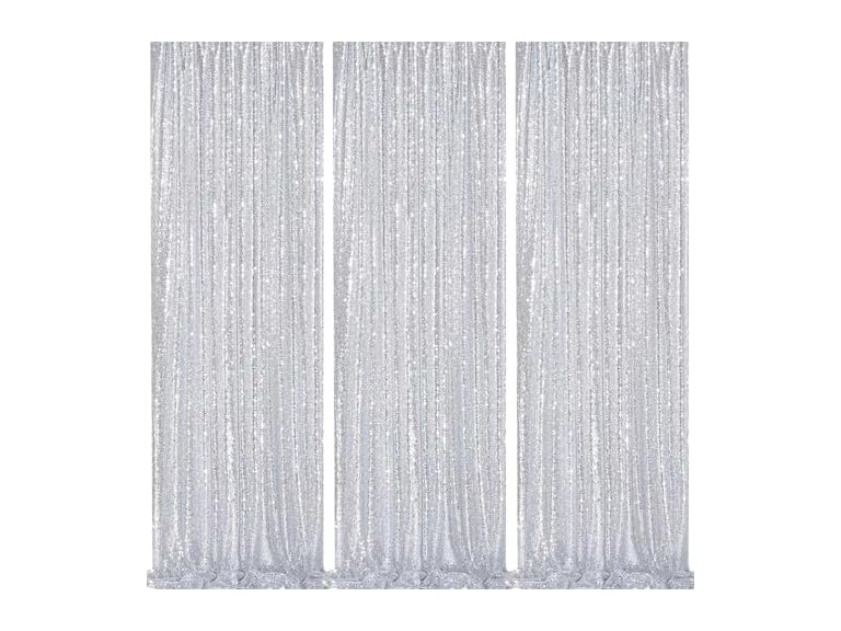 - Silver Backdrop Curtain: The total area covered by sequins backdrop is 6FT long x 8FT Width,each package contains 3 Packs 2ft x 8ft party sequin backdrop.With a 4-inch rod pocket on the top for easy hanging.