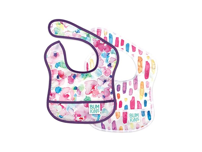 (1) Bumkins Bibs, for Baby Girl or Boy, Infant 3-9 Months, Essential Must Have for Eating, Feeding, Baby Led Weaning, Mess Saving Waterproof Soft Fabric, Starter Bib 2-pk (your choice of color)