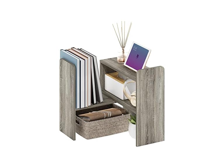 - SMART DESKTOP PROFILE: Two-level desk organizer and desktop bookshelf maximizes vertical space without crowding your work area — perfect for home office, study desk, dorm room, or gaming setup; overall size about 23.7" W x 6.7" D x 15.7" H