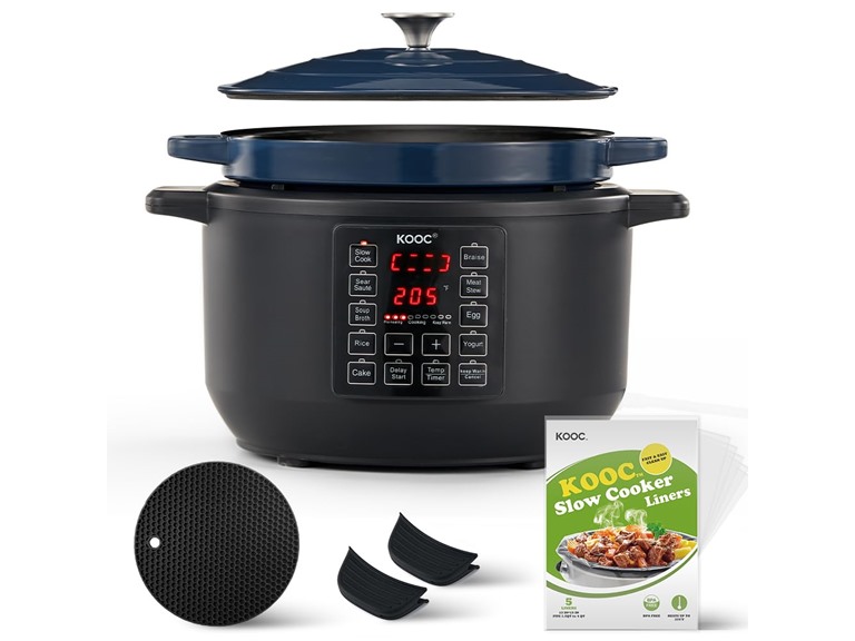 - (1) KOOC 10-in-1 Electric Dutch Oven, 6-Quart Slow Cook, Braise, Meat Stew, Sear/Sauté, Enameled Cast Iron with Self-Basting Lid, 1500W
