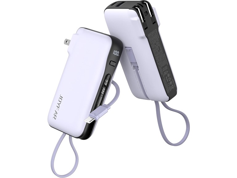 - (1) JOYFAR Portable Charger with Built-in USB-C Cable & Plug, 10,000mAh 5V/4.5A Power Bank Fast Charging 22.5W, Travel Essential Battery Pack 3 Output for iPhone 16/15 Series, Samsung Galaxy, iPad, 1 Pack